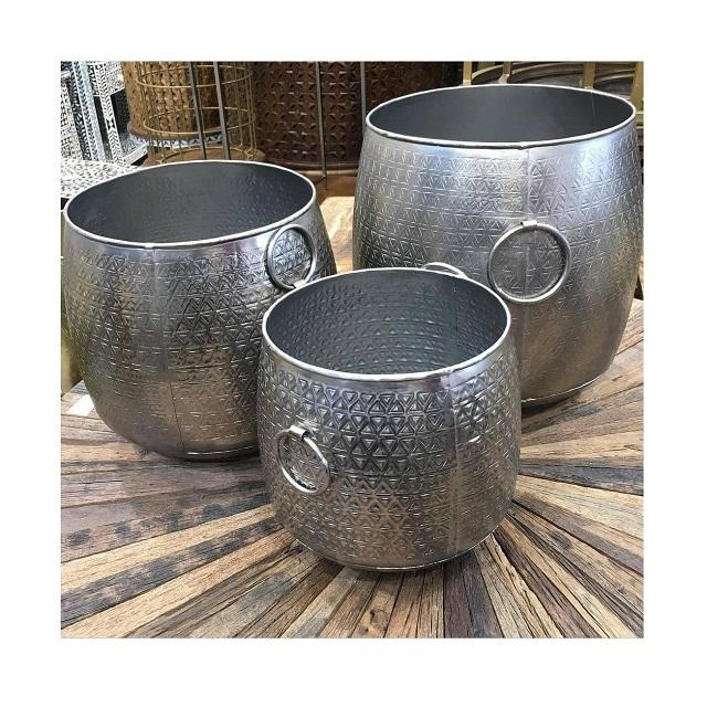 Ensemble de taille différente de trois jardinières en aluminium martelé pour accessoires de décoration de jardin
