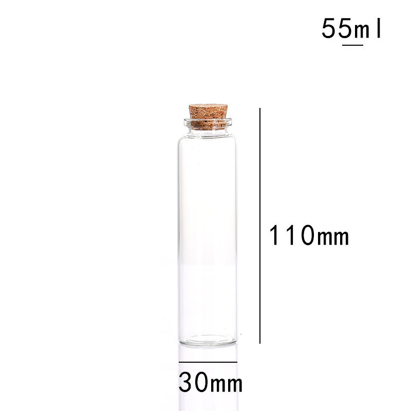Tubes à essai plats ronds clairs en verre de vis de différentes tailles avec des couvercles de liège