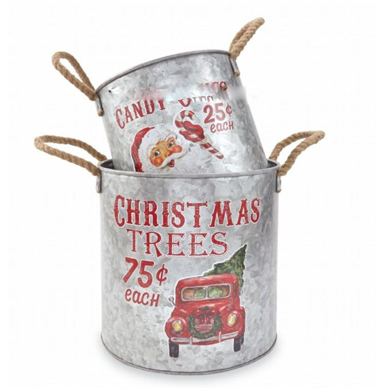 Seau de Noël tendance en métal galvanisé avec poignée en corde, différentes tailles, pour sublimation vierge, lot de 2