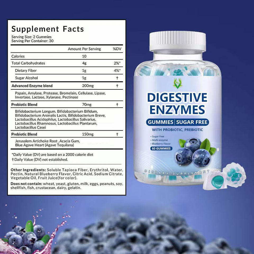 Gommes d'enzymes digestives avec mélange prébiotique probiotique complexe multi enzymatique pour le bien-être intestinal Absorption des nutriments