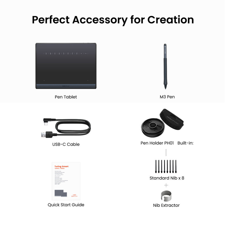 Tablette graphique sans fil DigiDraw 16384 niveaux compatible Windows/Mac/Android/Téléphone pour designers et étudiants