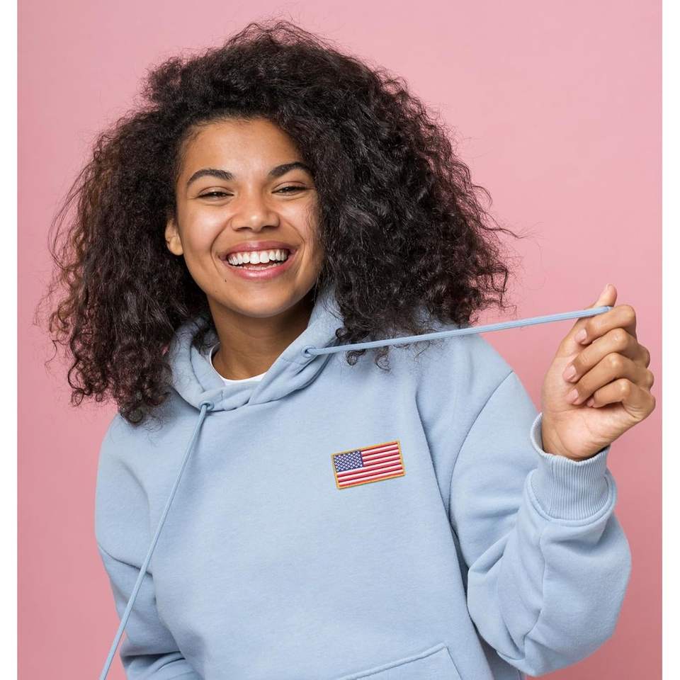 Patch brodé Drapeau USA DigitEMB 3x1,6 pouces, thermocollant pour vestes, en feutre non tissé avec bordure jaune