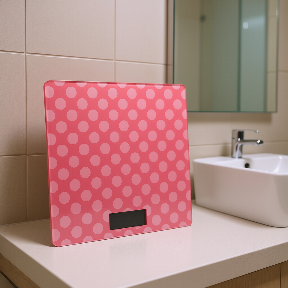 Balance de salle de bain numérique en verre trempé, rectangulaire, avec indication du poids et affichage numérique, alimentée par piles