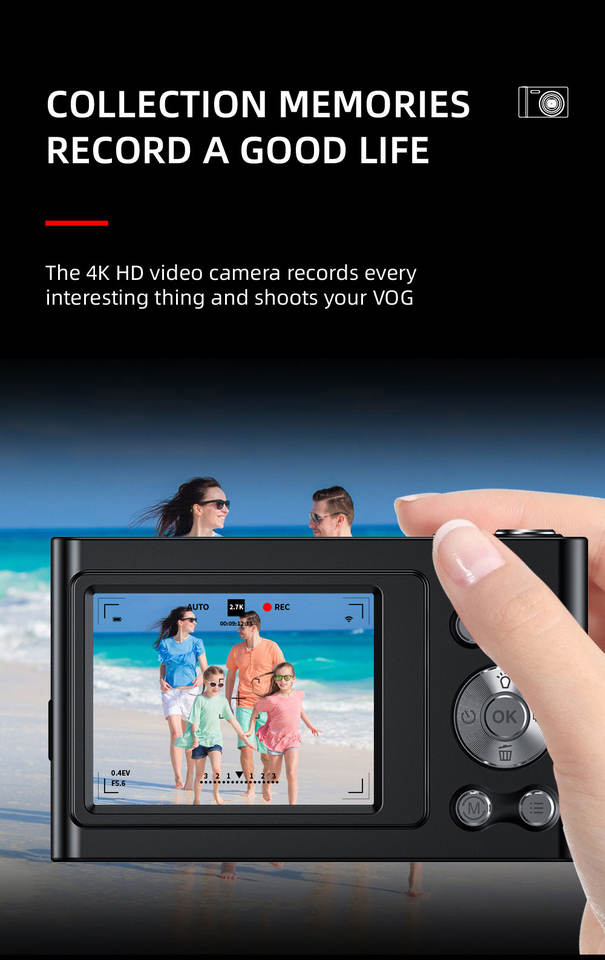 Caméra numérique 4k Caméscope vidéo 8-64G Écran IPS 2,4 pouces AF Détection de visage Flash et batterie Cadeau de Noël d'anniversaire pour garçon et fille
