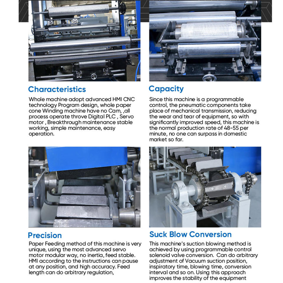 Machine de fabrication de cônes en papier à commande numérique PLC, bobinage automatique, séchage et flocage tout-en-un, équipement textile haute capacité