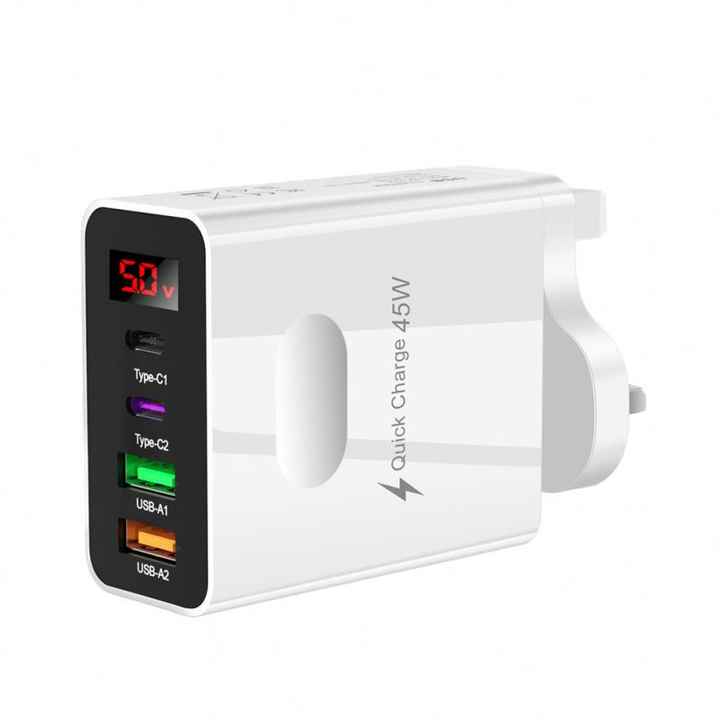 Digital Display Charger Multi Port Charging Head 3.1A 2USB+2Type c Adapter Universal Travel Adapter USB Charger