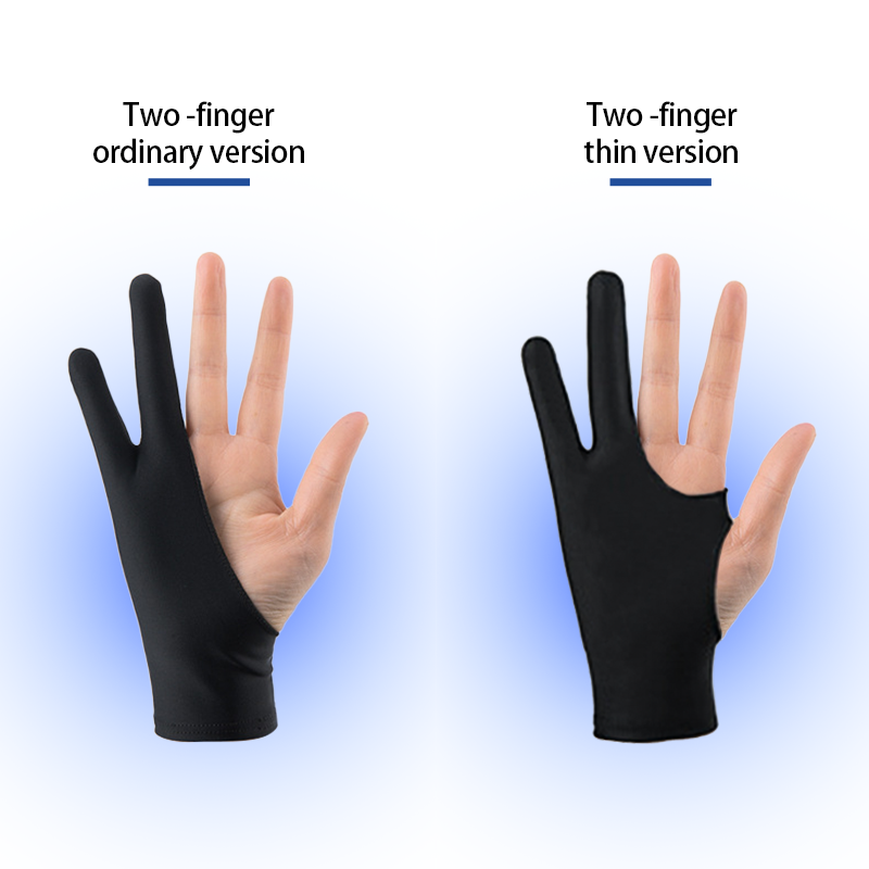 Gants de dessin numériques pour utilisation sur tablette Anti-dérapant Design à deux doigts Smudge Guard Graphiques personnalisés Matériau en nylon Couleur noire