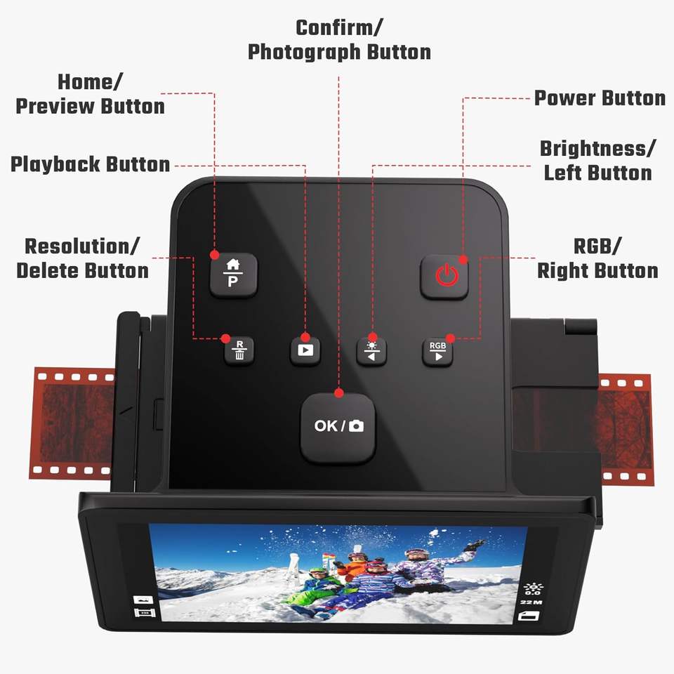 Scanner de diapositives numériques avec écran LCD de 5 pouces, CMOS, convertit les diapositives couleur/noir et blanc 135/110/126 KPK, négatifs Super 8, 22MP JPEG USB