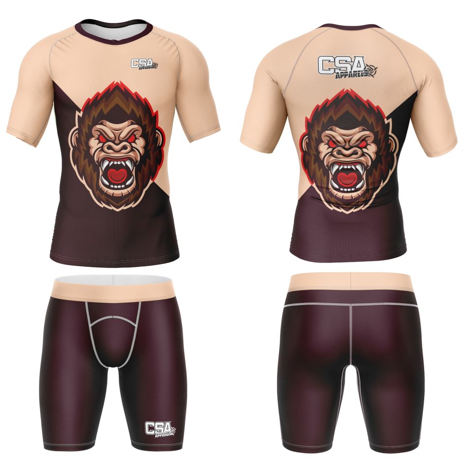 Ensemble de rashguard MMA respirant à impression numérique par transfert thermique pour homme, design sublimation, manches longues, vêtements de compression