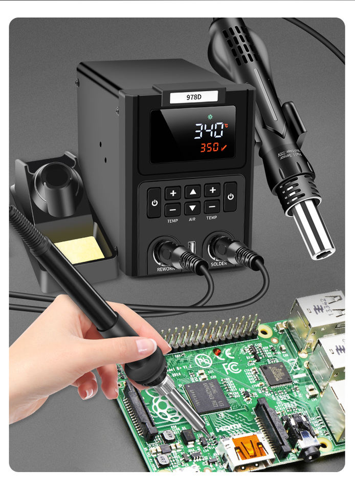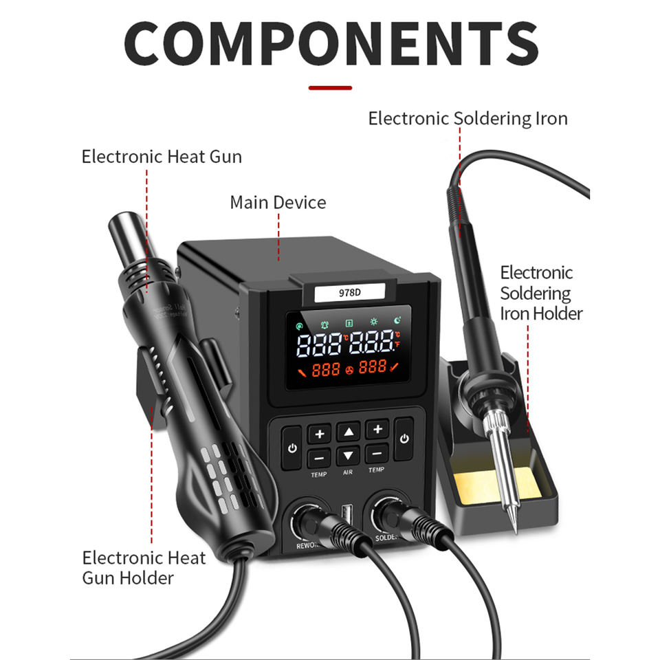 Station de Retravail à Air Chaud Numérique avec Fer à Souder à Température Réglable et Pistolet Thermique pour la Réparation de Circuits Imprimés et l'Assemblage Électronique
