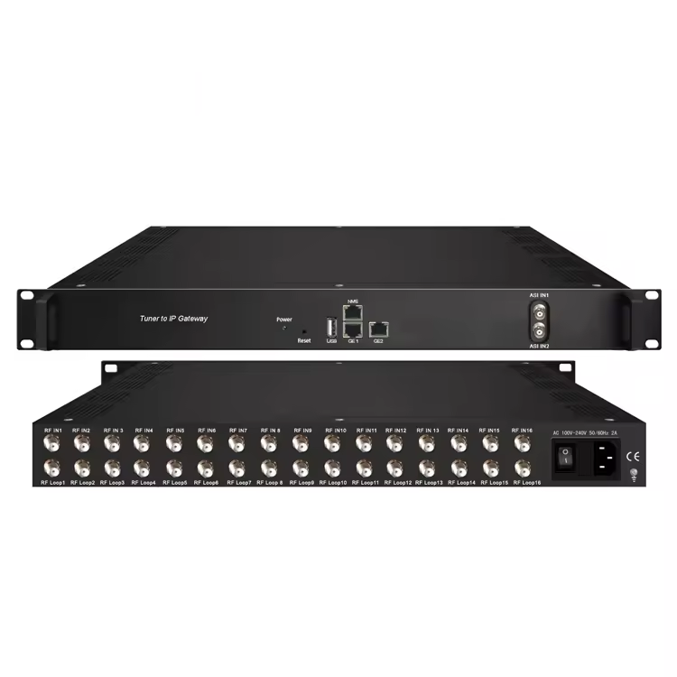 Tête de réseau IPTV numérique avec tuner DVB-C DVB-S2 ISDB-T ATSC 16 voies, encodeur et modulateur HD vers passerelle IP