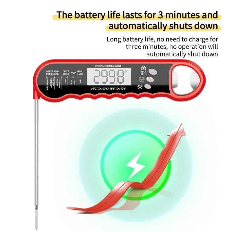 Thermomètre numérique à lecture instantanée avec écran LCD rétroéclairé pour aliments, barbecue, grillades, cuisine, usage domestique et ouvre-bouteille