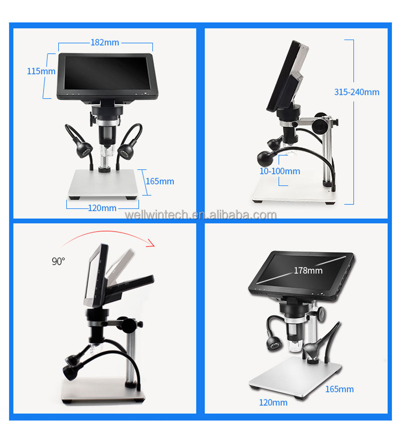 Microscope numérique avec écran lcd de 7.0 pouces full HD 1080p vidéo microscope avec 8 LED luminosité réglable