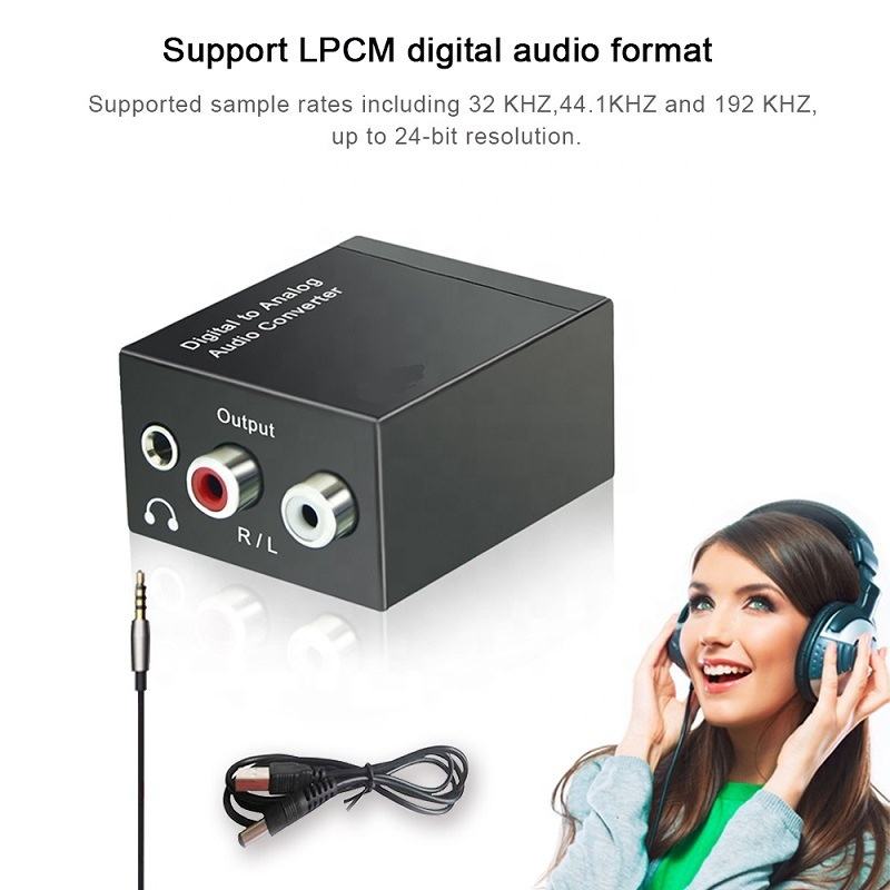 Circuit optique numérique analogique, 3.5 pouces, convertisseur audio R/L RCA, avec câble de chargement usb et câble optique