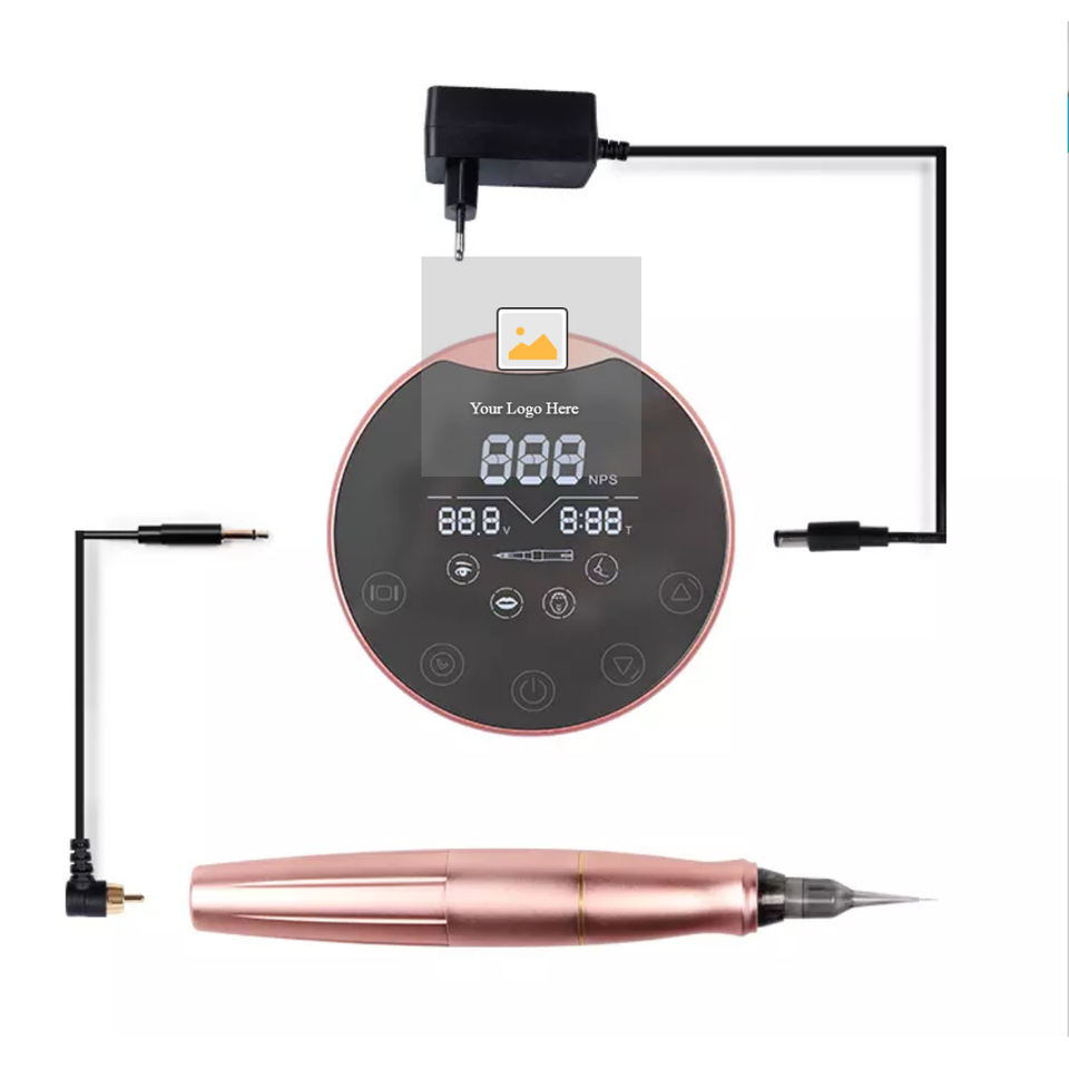 Pistolet de tatouage assorti:Stylo machine PMU avec 2 poignées d'aiguille