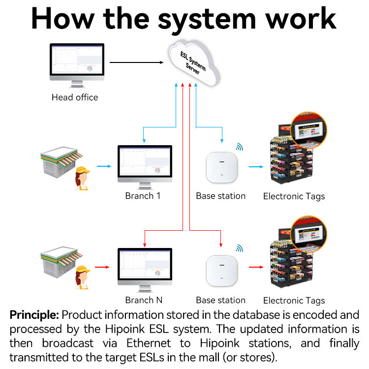Étiquettes de prix numériques, kit de démonstration d'étiquettes électroniques pour étagères (ESL) pour supermarchés, quatre couleurs