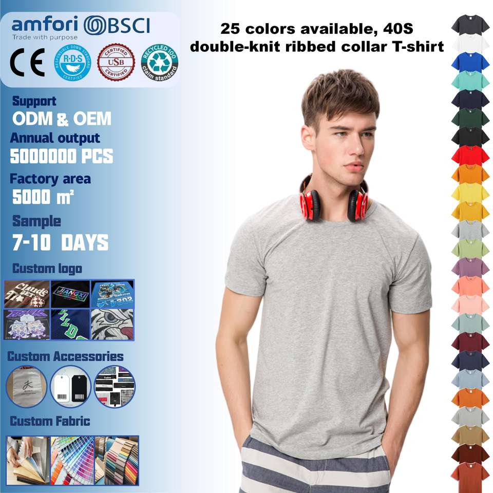 T-shirt en coton 100% 40s double fil, poids lourd, couleur unie, impression numérique 205GSM, coupe classique