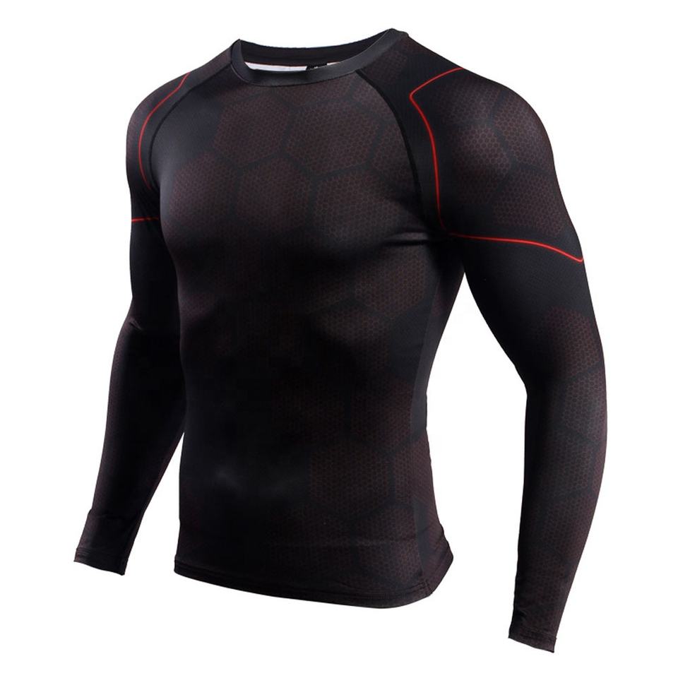 Impression numérique ODM personnalisé OEM 100% coton MMA BJJ Rash Guard chemise de compression sportive à manches longues pour hommes