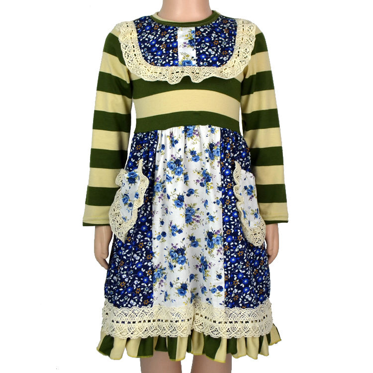 ODM, Service OEM, Articles en stock, Robe à manches longues pour filles, robe imprimée à manches longues