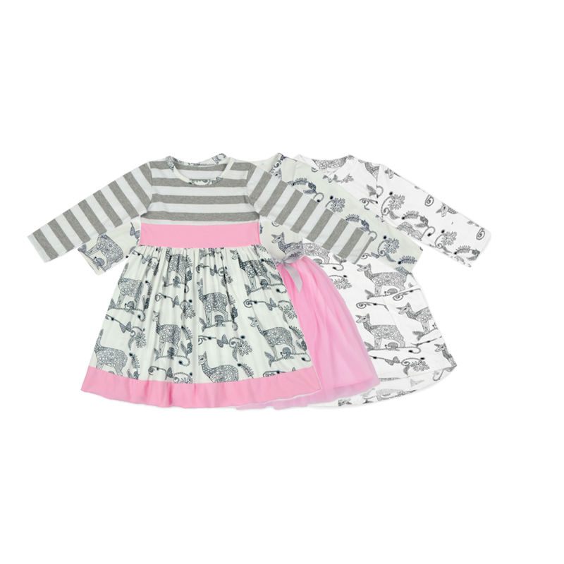 ODM, Service OEM, Articles en stock, Robe à manches longues pour filles, robe imprimée à manches longues