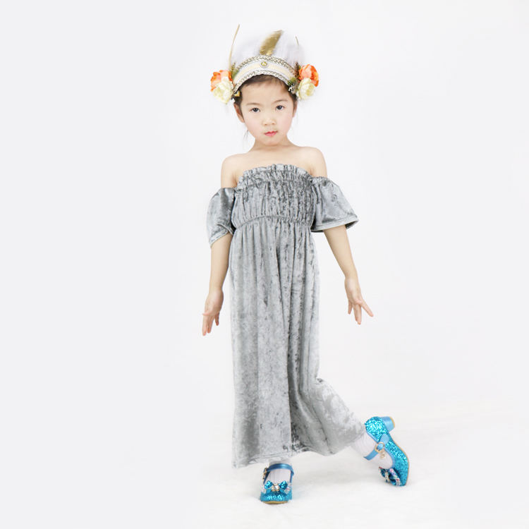 Robe longue pour bébé fille à imprimé numérique personnalisé, motif floral, épaules dénudées, vente en gros de vêtements pour bébés et enfants
