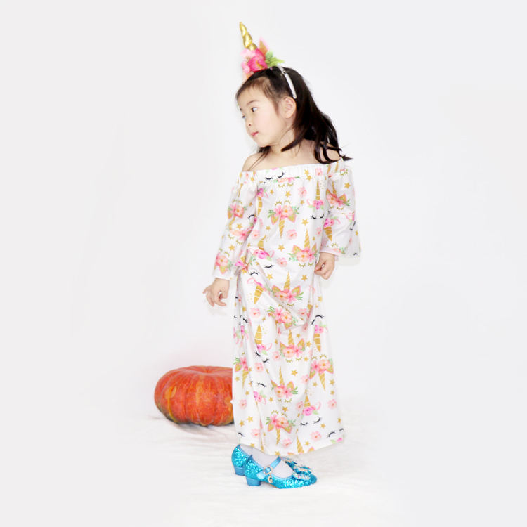 Robe longue pour bébé fille à imprimé numérique personnalisé, motif floral, épaules dénudées, vente en gros de vêtements pour bébés et enfants