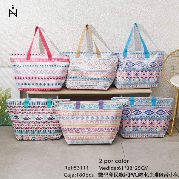 Sac de plage étanche en PVC de style ethnique imprimé numérique 61*38*25CM avec sangle (petit sac)
