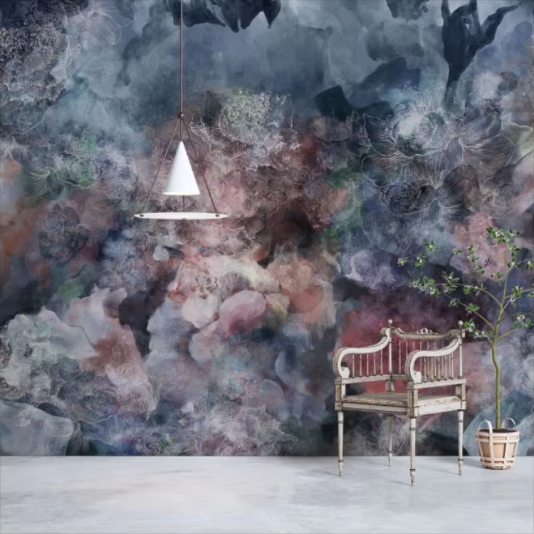 Papier peint de conception de nuages colorés floraux imprimables numériques pour l'amélioration de l'habitat