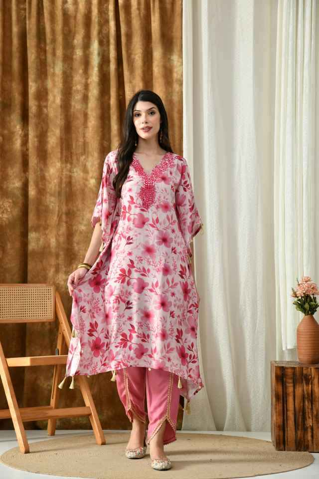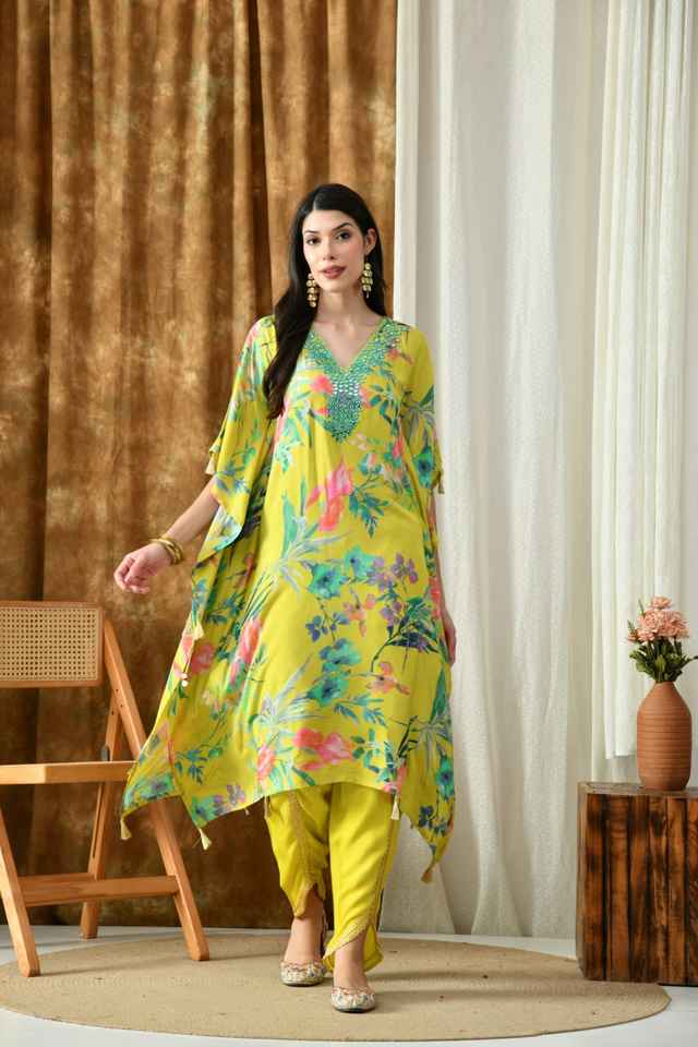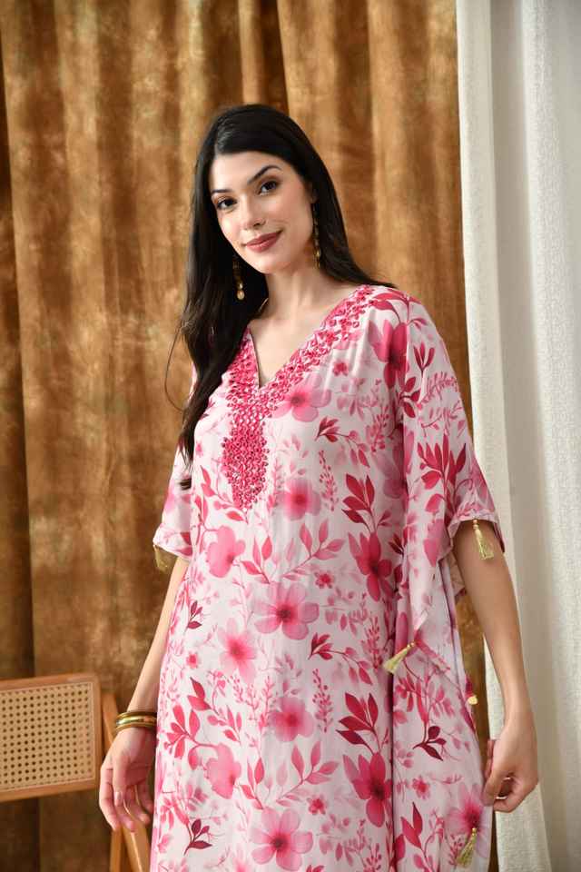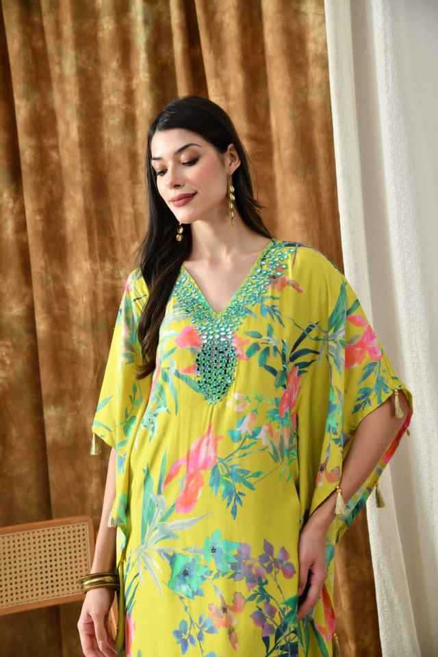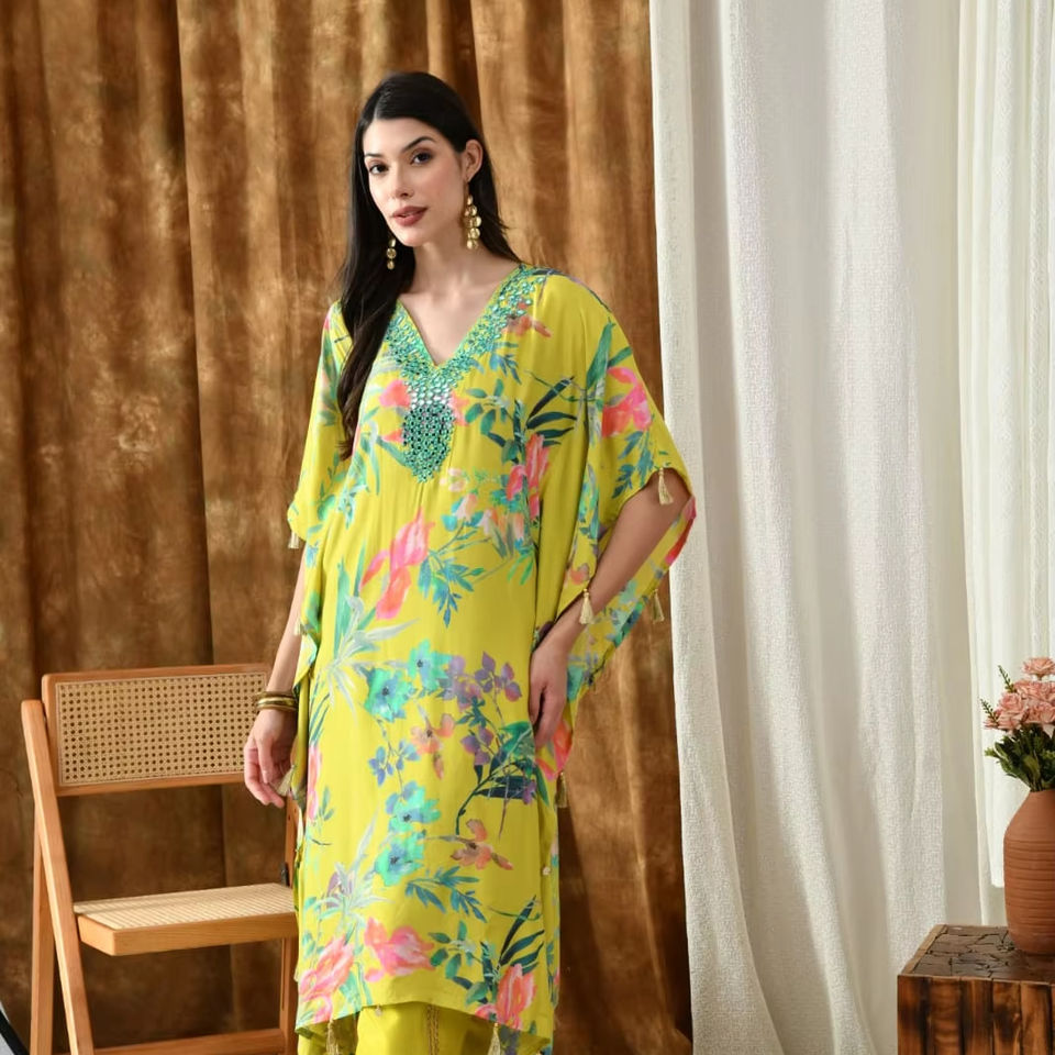 Ensemble caftaan Maslin imprimé numérique miroir lourd travail manuel élégant vêtements traditionnels musulmans accessoires Viscose fête quotidienne
