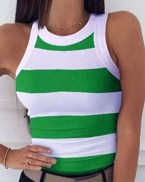 Débardeur col rond I sans manches imprimé numériquement de qualité supérieure avec logo personnalisé à bas prix Débardeur femme imprimé à rayures Nouvelle mode