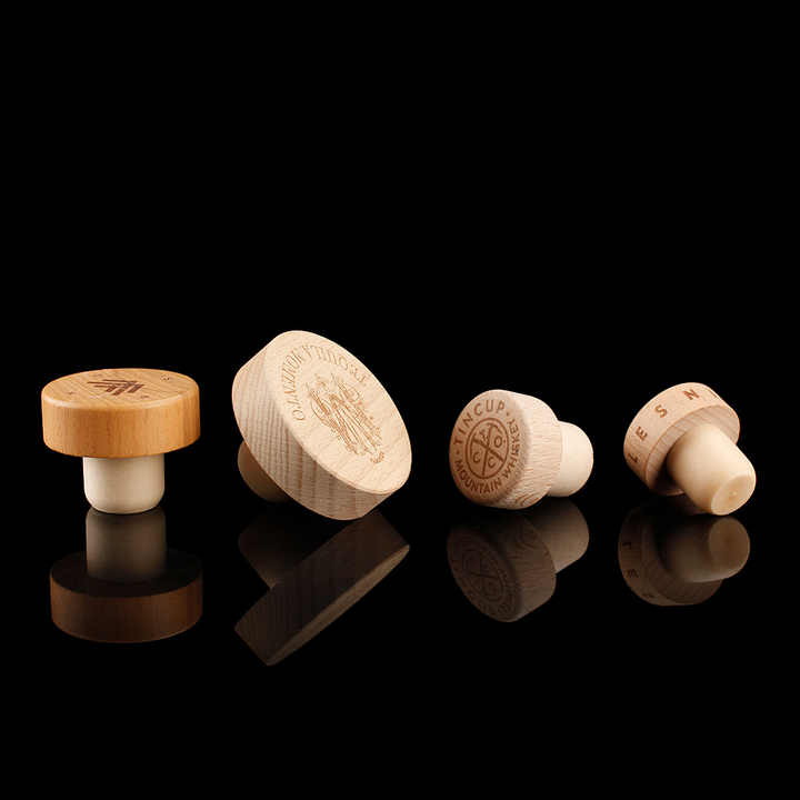 Impression numérique alliage de zinc fantaisie en forme de t bouteille en verre de liqueur de vin gravure sur bois naturel bouchon de tequila en liège