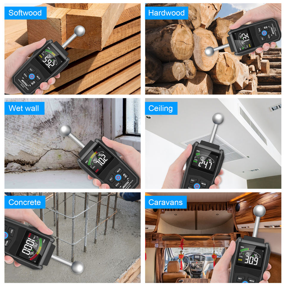 Sonde de testeur d'humidité sphérique numérique Humidimètre multifonctionnel à affichage LCD Non invasif Bois Béton Mositure Meter