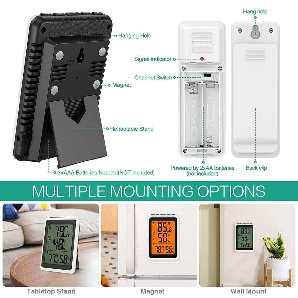 Nom du produit:Thermomètre hygromètre numérique avec 3 capteurs sans fil