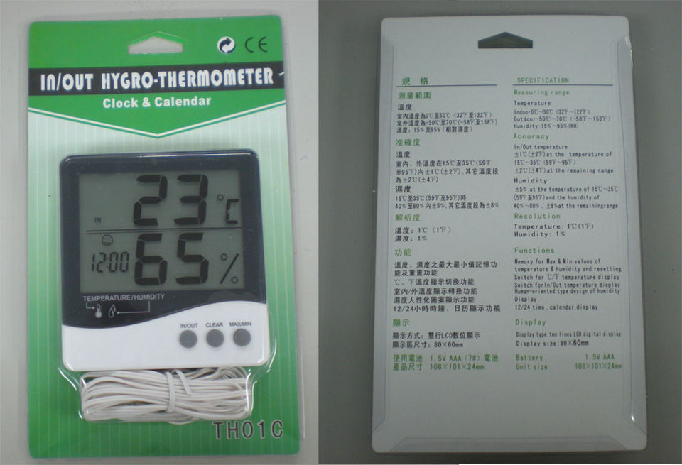 Plage de température:DANS: 0C 50C(32F 122F) OUT -50C ~ + 70C-58F ~ 158F