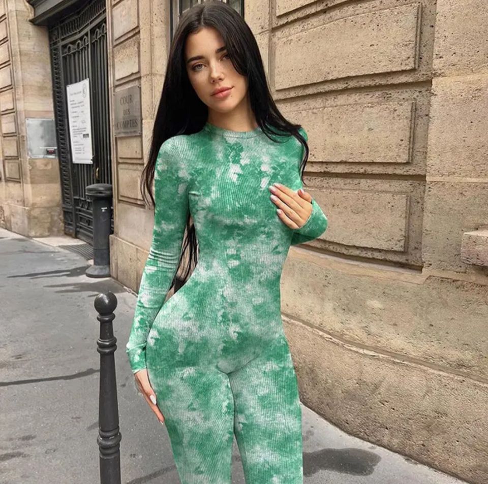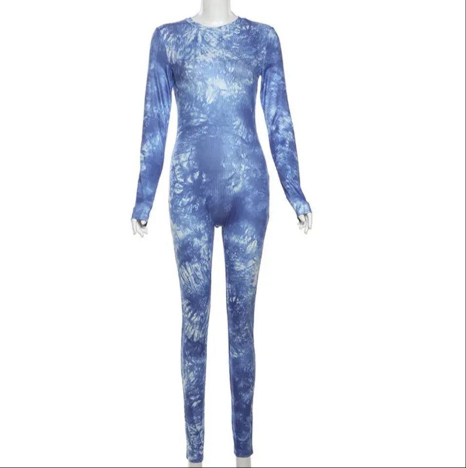 Digital color Long Sleeved O-neck One-piece Tight Fitting Jumpsuit for Women, Yoga Fashion Tie Dye Printed Casual Jumpsuit
