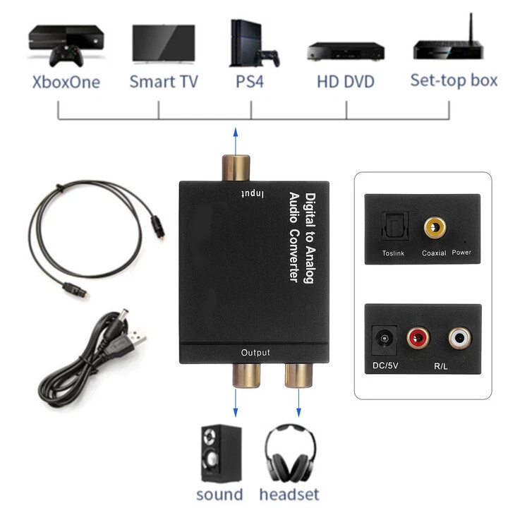 Digital to Analog Optical Coaxial Audio Converter signal Audio Line Receiver with 3.5 Amplification Power Decoder