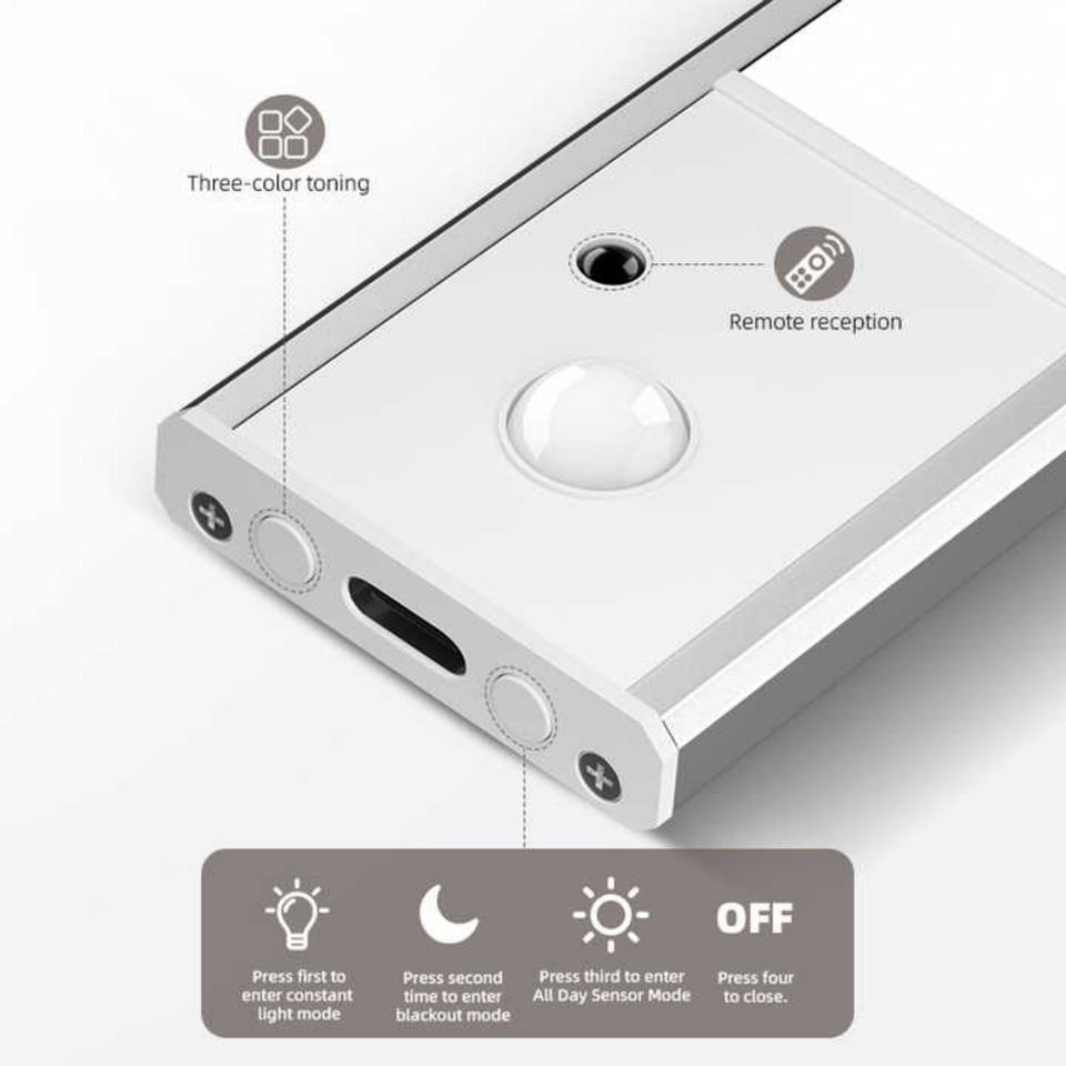 Lampes LED sous-armoires à détecteur de mouvement, dimmables 3000K 4000K 6000K, télécommande, 200/400/600/800MM, argent/noir