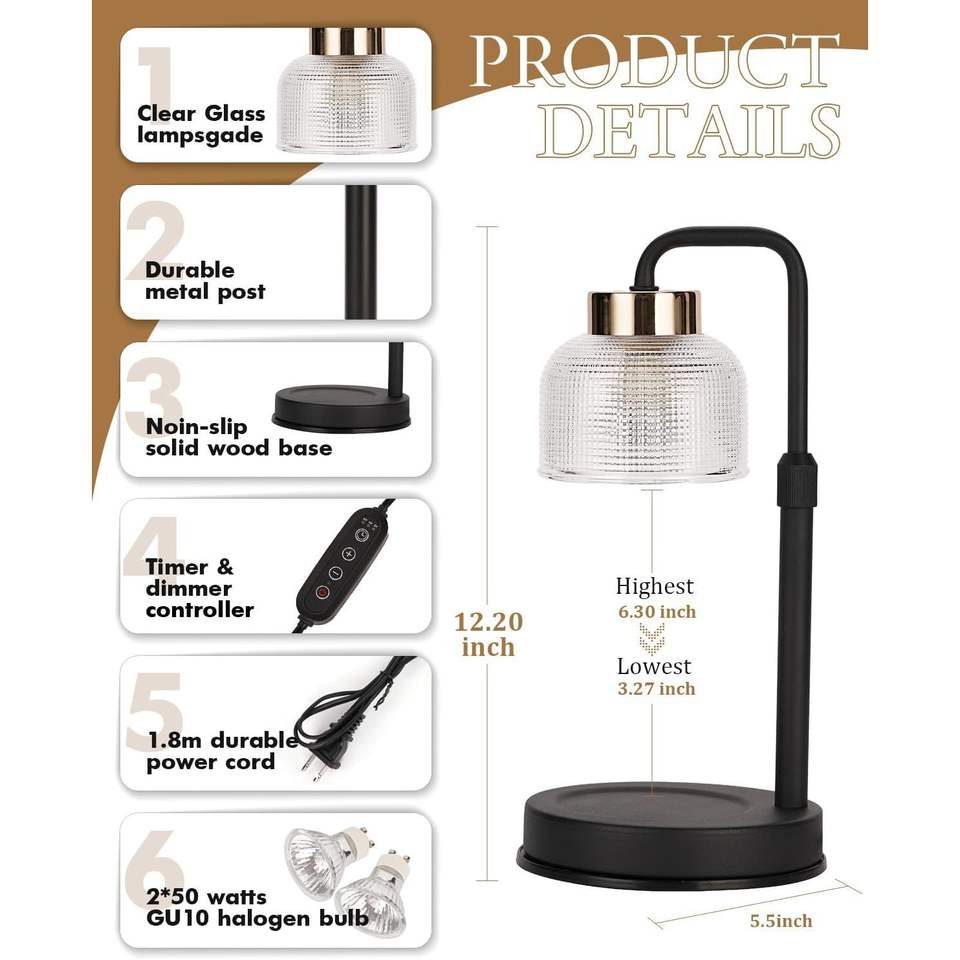 Lampe chauffe-bougie à intensité variable avec minuterie pour la maison ou comme cadeau de Noël ou de pendaison de crémaillère