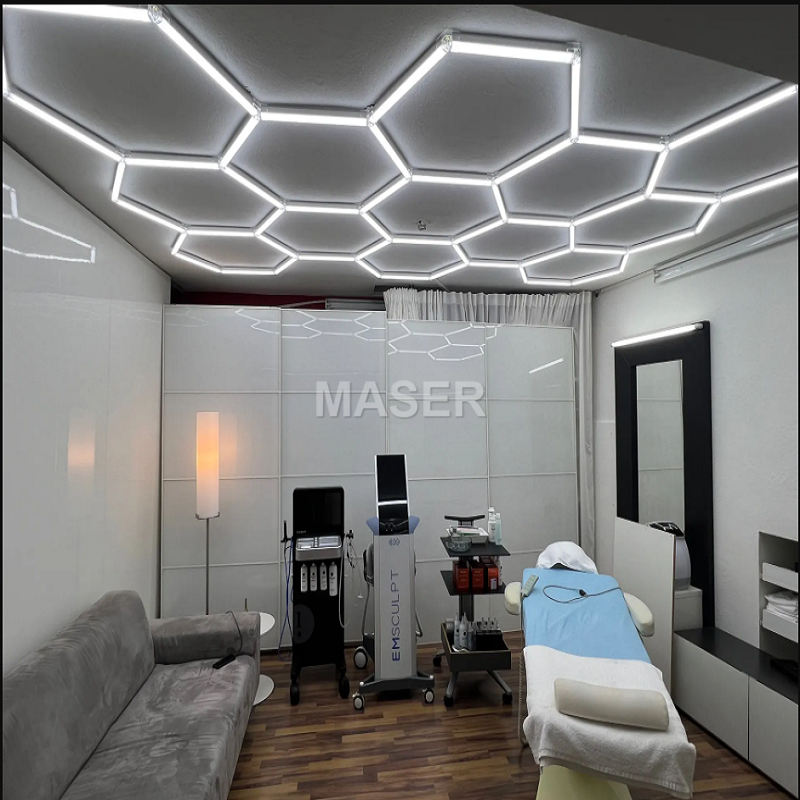 Dimmable Cyan Cliff Hexagon Garage Lumière LED Nid D'abeille Plafonnier Lampe De Travail pour Garage Clinique Dentaire Gym Barbershop