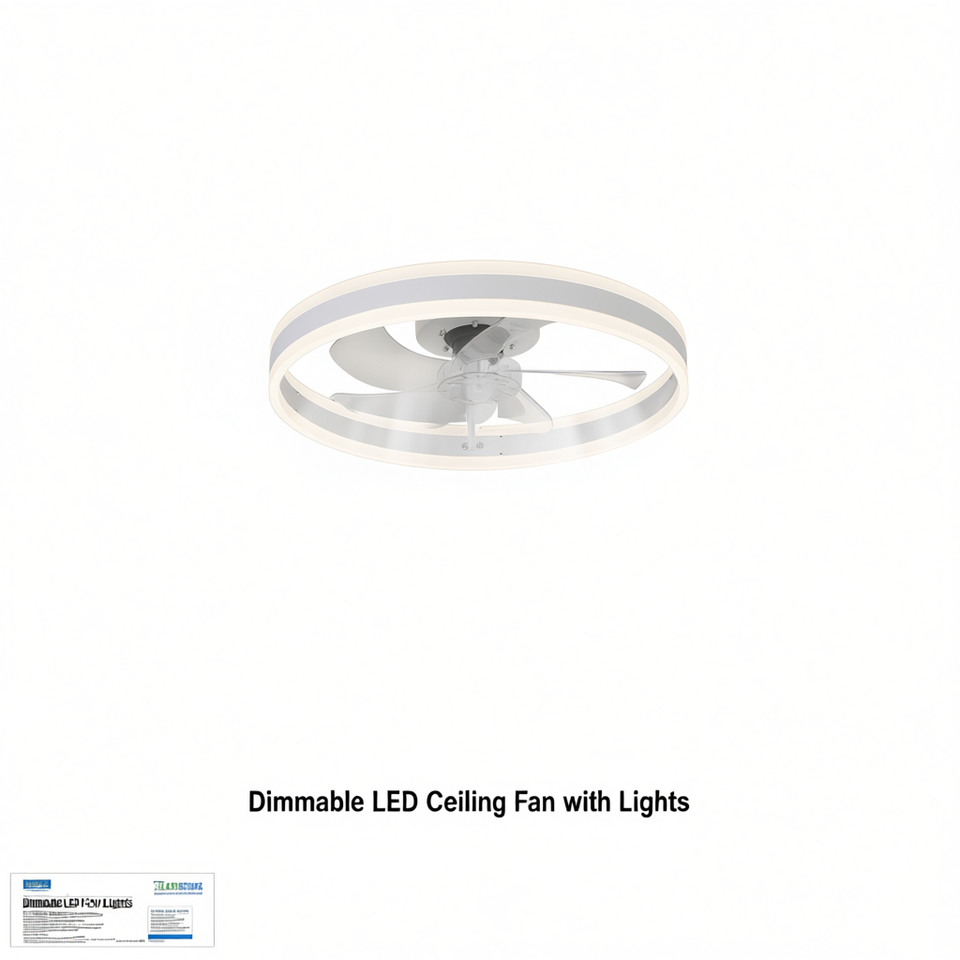 Ventilateur de plafond LED avec éclairage, intensité réglable, montage encastré, 3 pales, moteur DC, télécommande, design moderne, salon