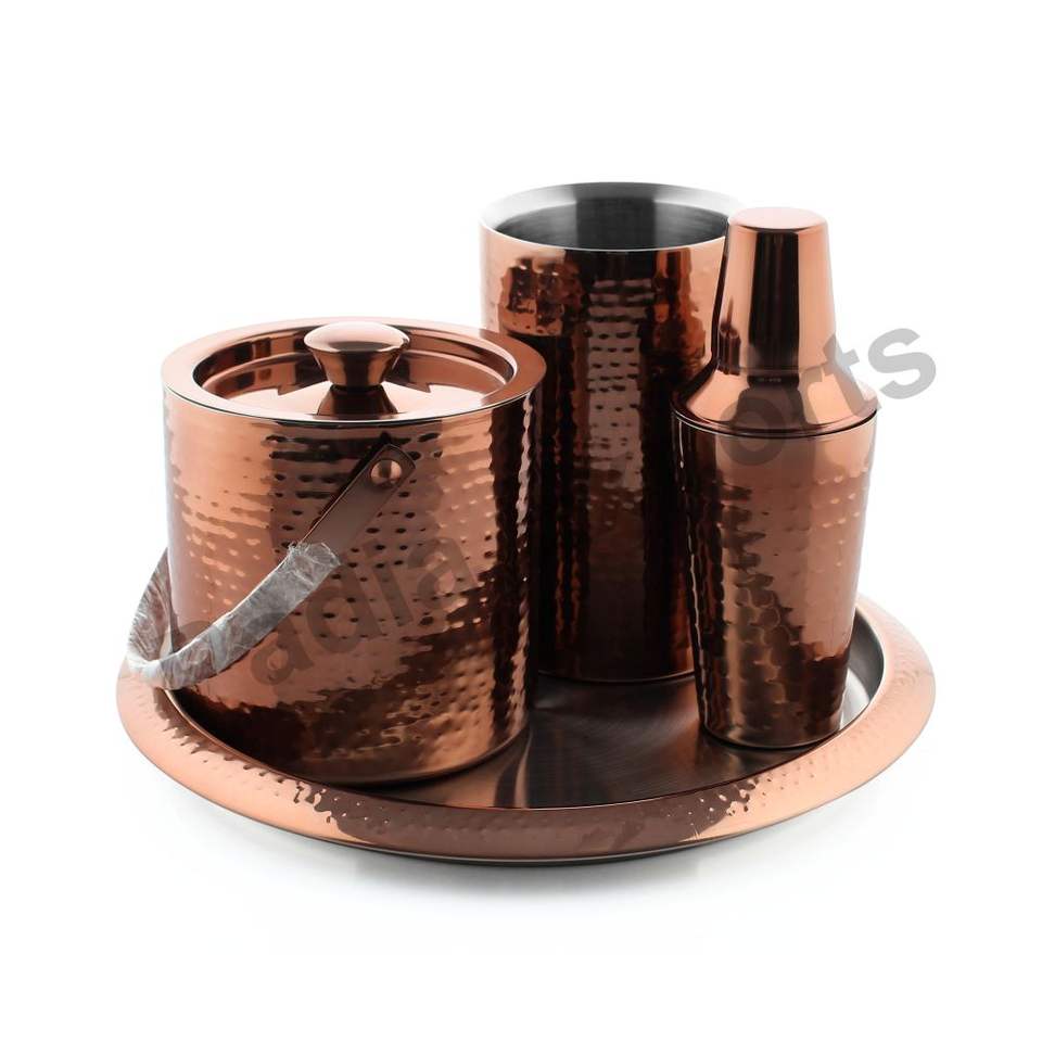 Dimple Hammered Bar Set Cuivre Kit de barman Premium 4 pièces pour un ensemble classique de mixologie élégant