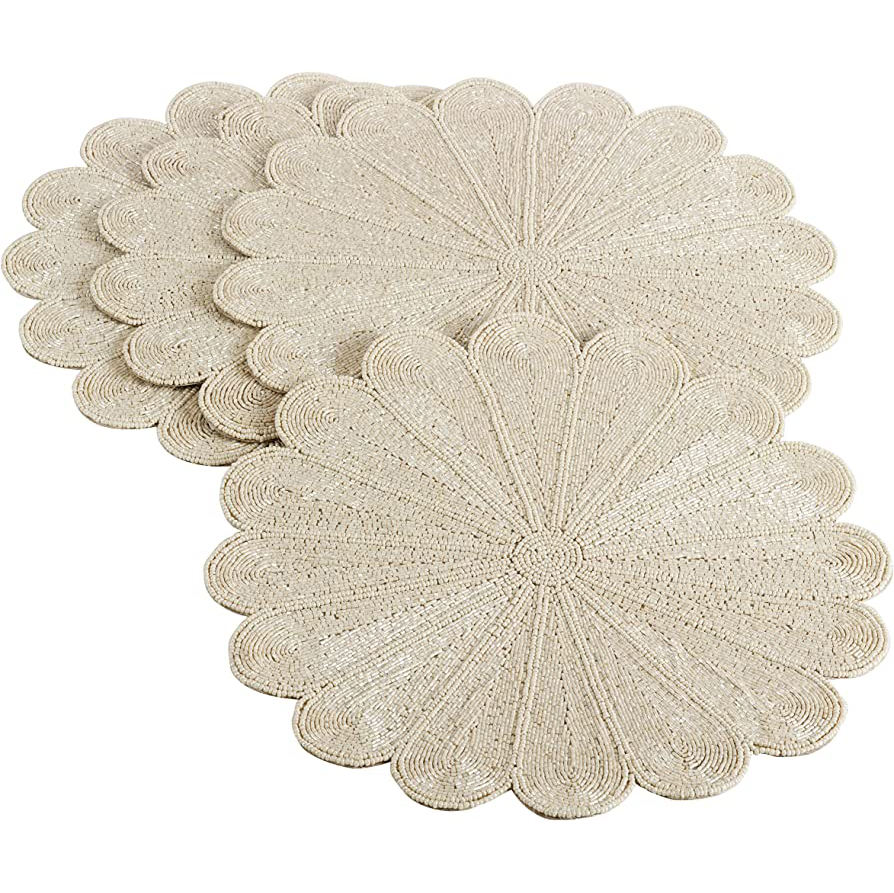 Napperon rond perlé pour Table à manger tapis fantaisie fait à la main perlé 13x13 napperon chemin décoratif pour fête de mariage