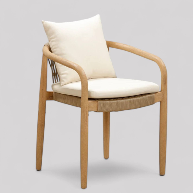 Chaise de salle à manger en osier avec assise et structure en teck pour ensemble de meubles de jardin