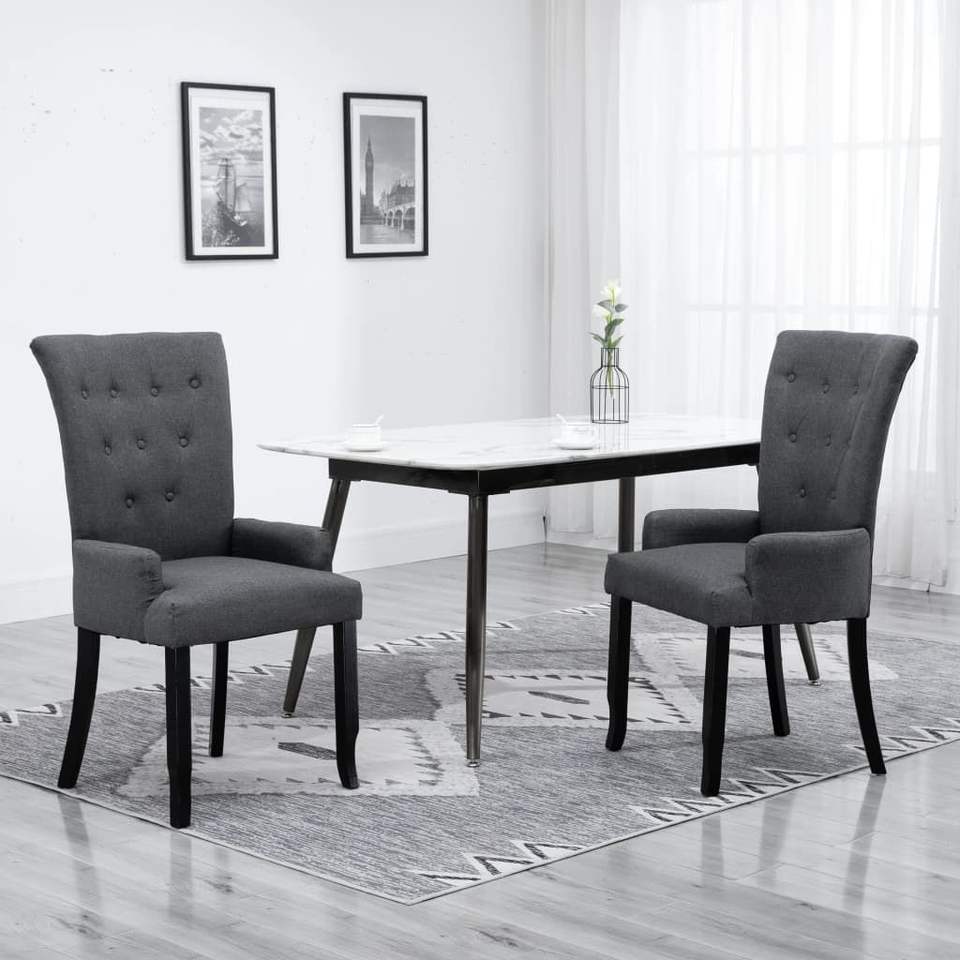 Chaise de salle à manger avec accoudoirs en tissu gris foncé