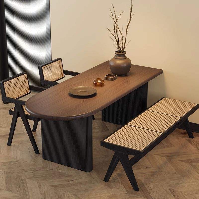 Ensemble table et chaises de salle à manger 4 pièces en bois massif, design moderne semi-circulaire pour petites maisons, style îlot mural