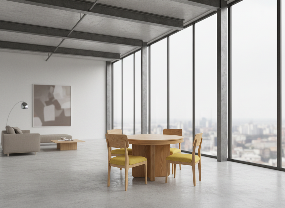 Ensemble de table basse ronde moderne avec 4 chaises en bois de frêne massif, léger et durable
