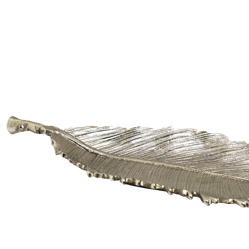 Plat de service en aluminium moulé en forme de feuille pour la table, finition nickel brillant, fait main, personnalisé