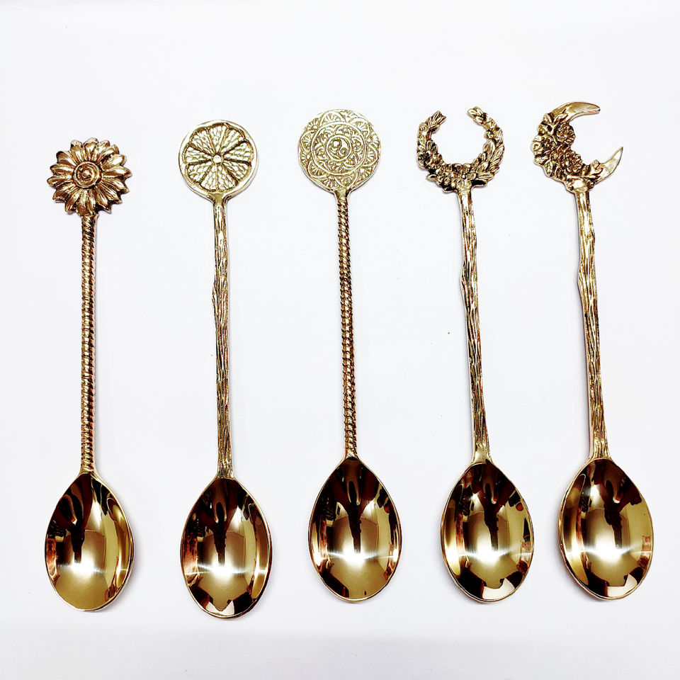Ensemble de cuillères à dîner Couverts de haute qualité Cuillères à dessert Lot de 5 poignées côtelées de conception différente Vernis à miroir et laque alimentaire