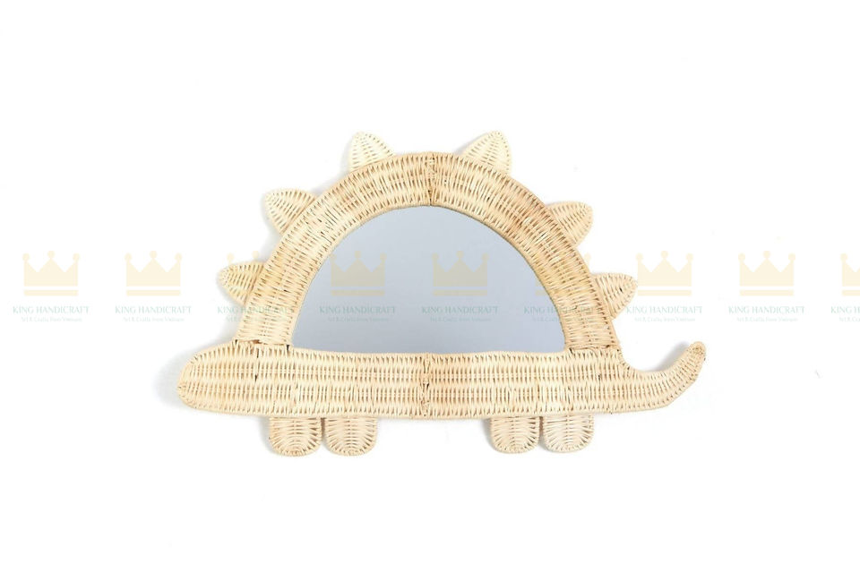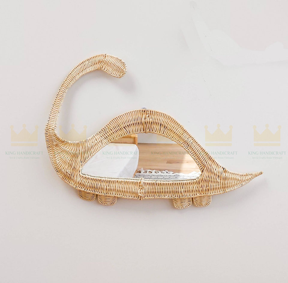 Dino Miroir mural en rotin fait à la main de conception moderne Forme personnalisable écologique pour la décoration de la maison