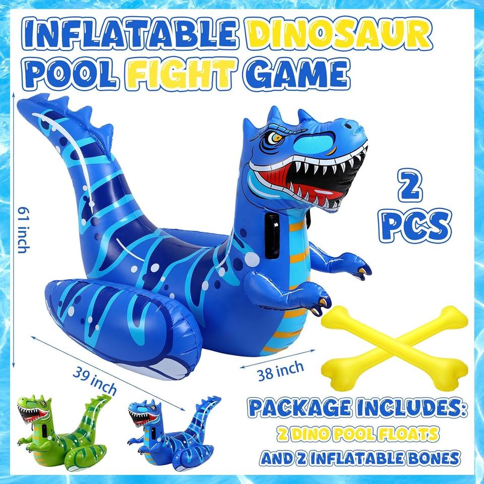Jeu de flotteur de piscine gonflable de combat de dinosaure avec 2 tours de bataille géants sur le jeu de piscine Dino Duel pour garçons filles adultes